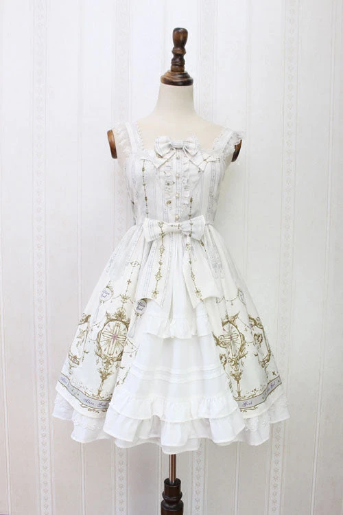 White Cotton Square Collar Short Sleeves Floor Length Multi-Layer Victorian Gothic Lolita Dress