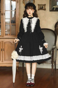 Black God’s Salvation Square Collar Short Sleeves Lace Ruffled Gothic Lolita OP Dress