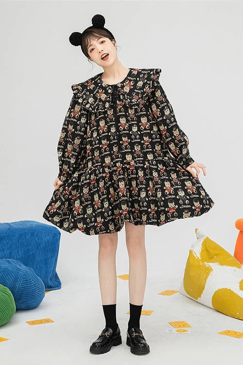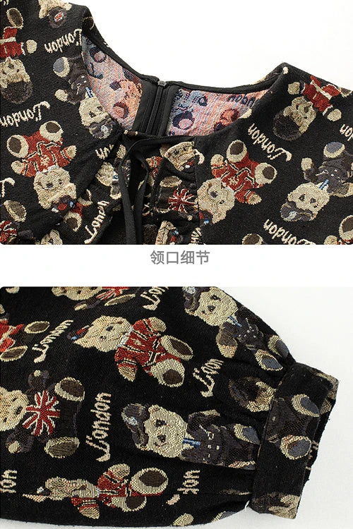 Chinese Style Long Sleeves Landscape Painting Print Bowknot Sweet Elegant Lolita Dress 2 Colors