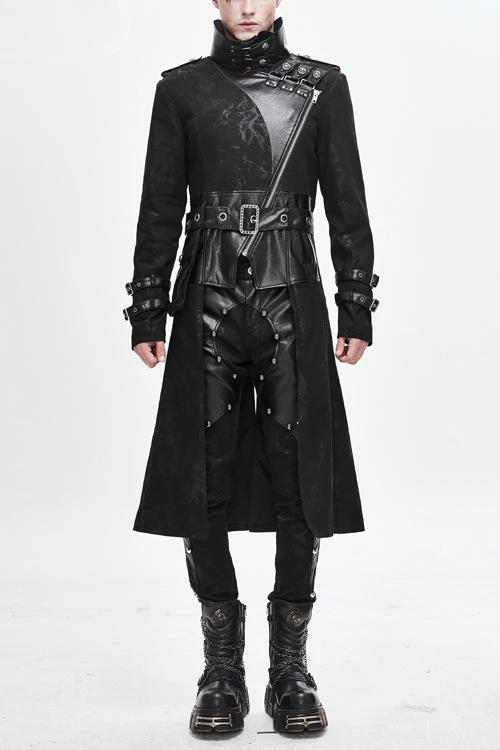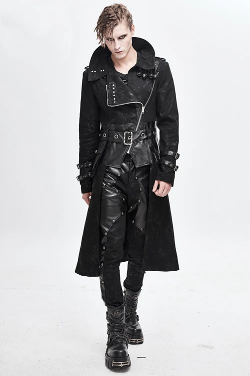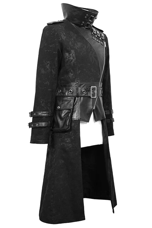 Twill glued fabric splicing with black hand rub leather, The collar is designed to be open collar. The loop position is fixed at one side. Connected with the square button and adjusted with the snap fastener.The center front belt can be nipped waist or detachable.