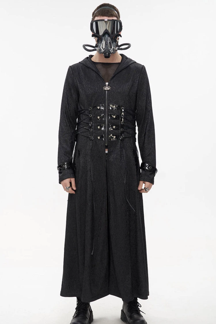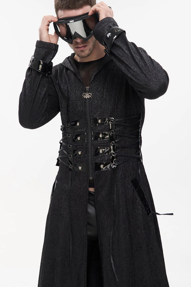 The main material is made of striped mechanism material, the waist, sleeves and back are stitched with mirror leather, with metal decoration, and the waist is fake girdle design, thread the eyelet to adjust the decoration.