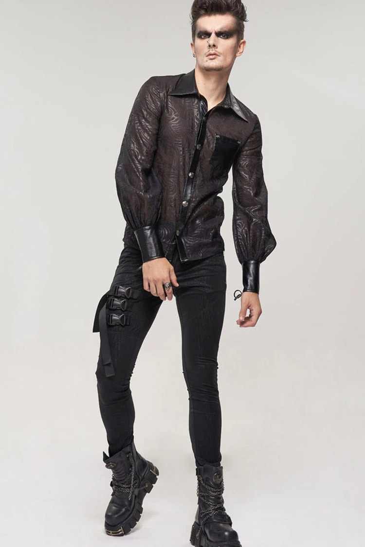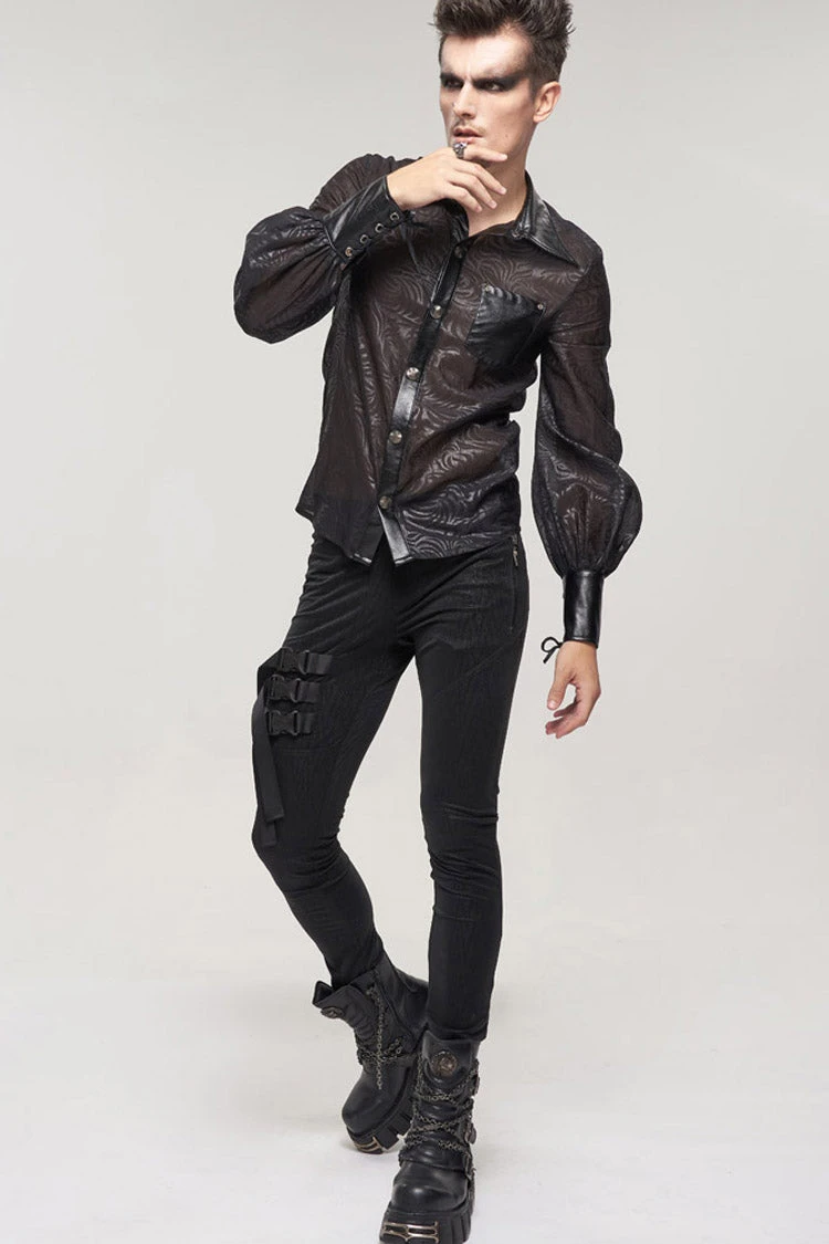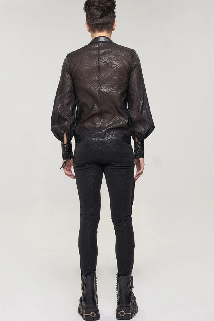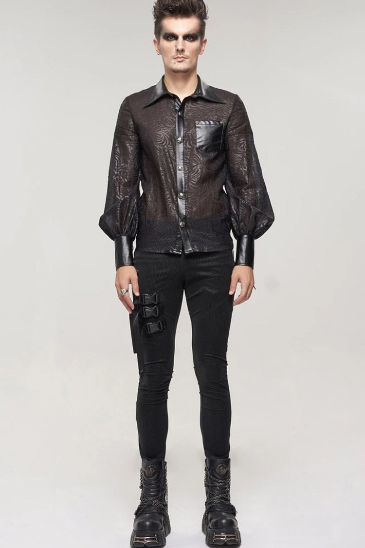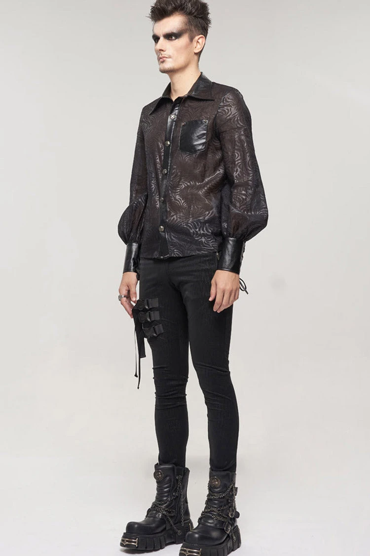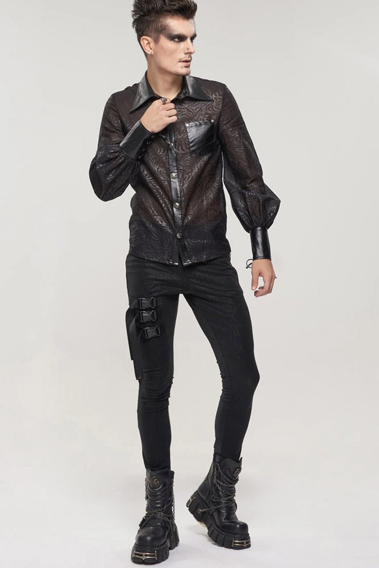 The main material is a tree-grain perspective woven material, the ingredients are black leather, and the cuffs are tied with eyelets. Front center hitting snap button design.