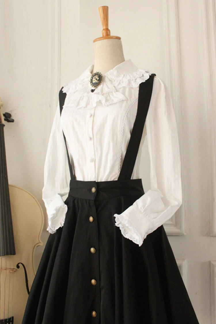 White Cotton Square Collar Short Sleeves Floor Length Multi-Layer Victorian Gothic Lolita Dress