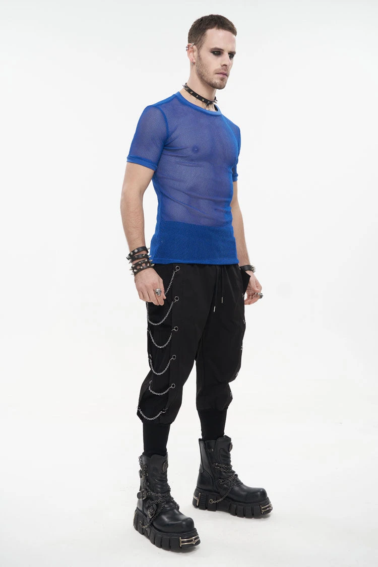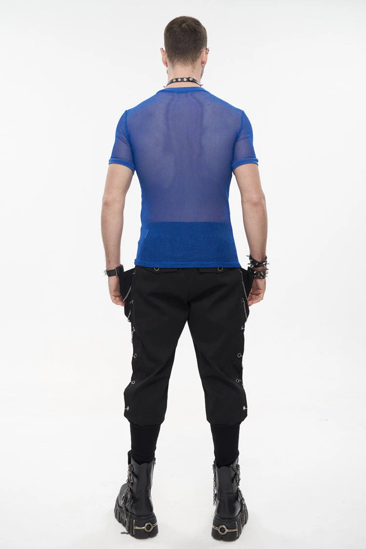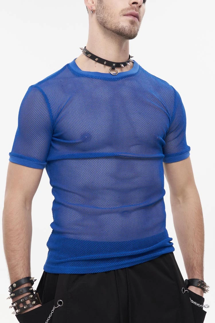 The whole piece is made of hexagonal diamond mesh material with excellent elasticity and is designed into a basic style round collar and short-sleeve T-shirt, with braids and tied with the rope of side seams, suitable for daily wear.