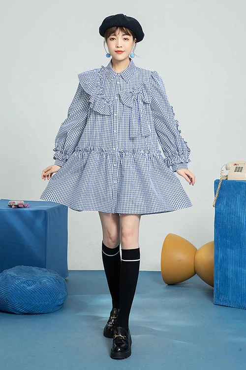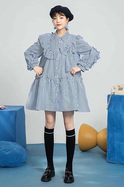 Blue Multi-Layer Trumpet Sleeves High Waisted Peacock Embroidery Print Victorian Lolita Prom Dress