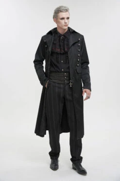 Black Lapel Collar Double Breasted Metal Cross Zip Men’s Gothic Long Coat