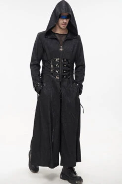 Black Punk Stripe Mechanism Material Adjustable Stitching Fake Girdle Design Slim Fit Men’s Coat