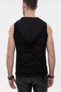 Black Punk Velvet Jacquard Chest Tie Sleeveless Hooded Men’s Shirt