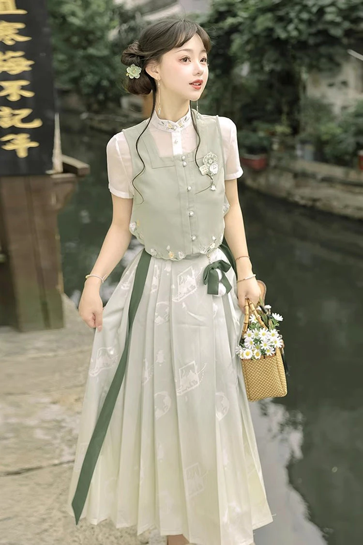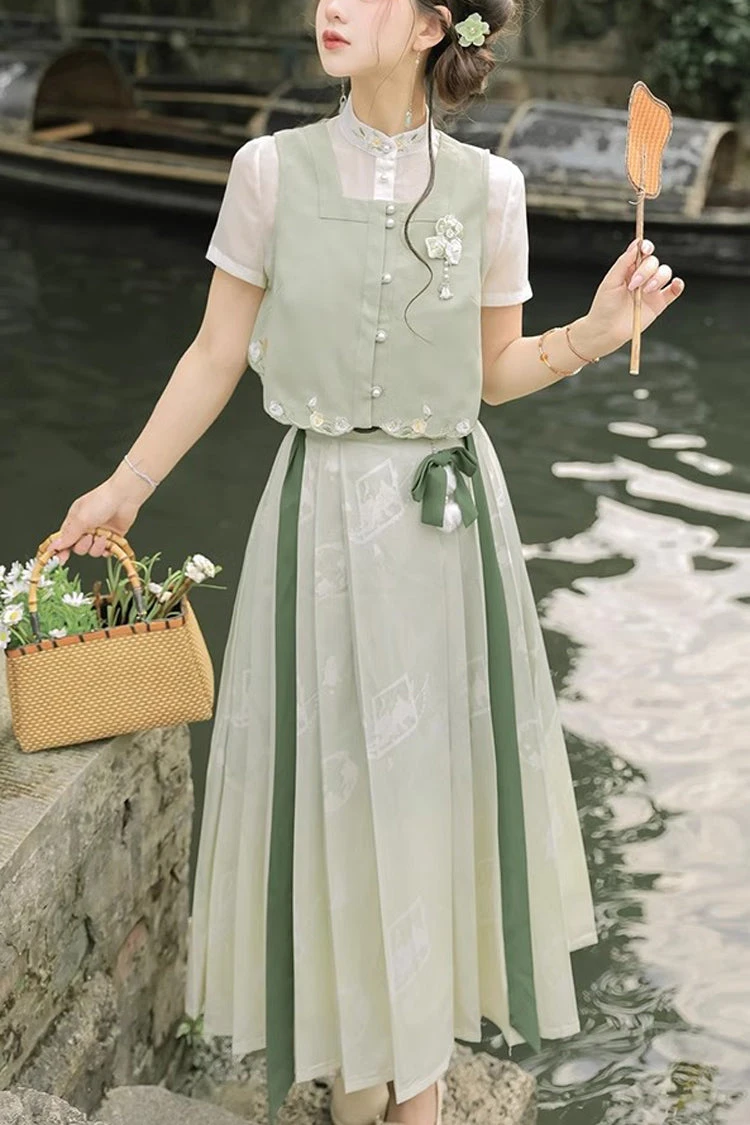 Include: Long Skirt*1+Vest*1+Short Sleeves*1 (Any of the accessory is not included.)
