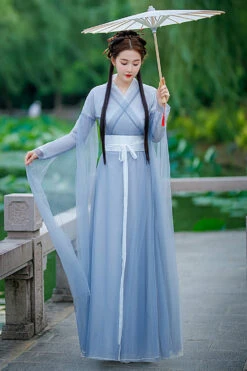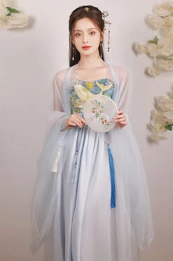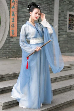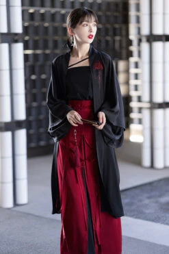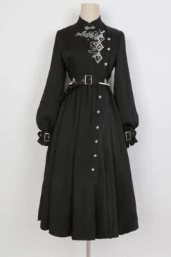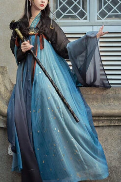 Black Mysterious Long Sleeves Chinese Style Single Breasted High Waisted Print Hanfu Dress