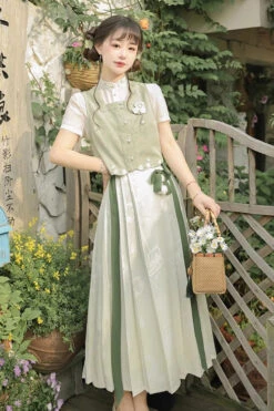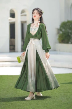 Original Chinese Han Elements Ancient Double Layer Long Sleeves Sweet Hanfu Dress Full Set