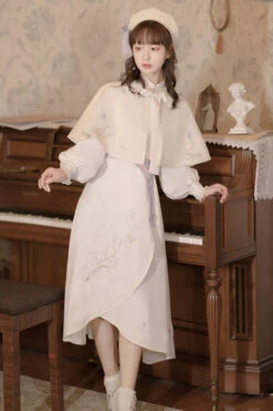 Beige Original Chinese Style Elegant Ink Printing Classic Lolita Hanfu Dress Full Set