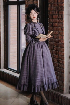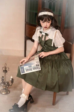 Dark Green Vintage Plaid Print Embroidery Fake Two Pieces High Waisted Classic Lolita Dress
