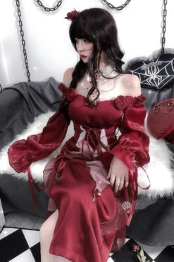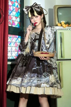 Red Puff Sleeve Church Victory Print Classic Lolita OP Dress