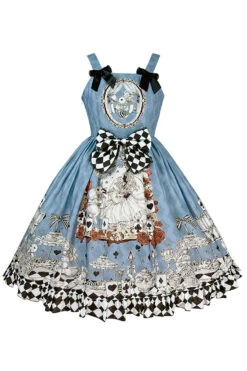 Dark Blue Vintage Mermaid Song Square Collar Bowknot Ruffled Sleeveless Gothic Lolita JSK Dress