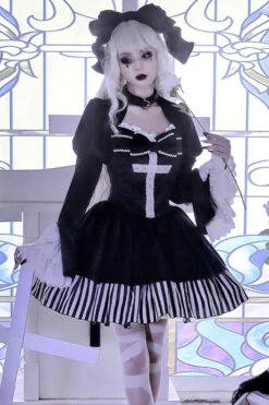 Dark V Neck Bowknot Rivets Epaulettes Sleeveless Military Uniform PU Gothic Lolita Jsk Dress