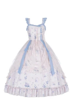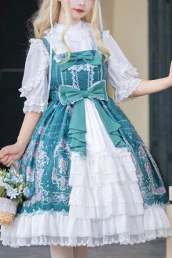 Light Blue Violin Cat Print Bowknot High Waisted Multi-Layer Ruffled Sweet Lolita Jsk Dress