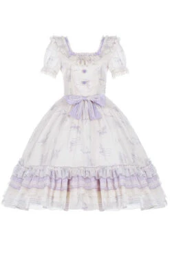 Letters And Poems Starry Bellflower Print Short Sleeve Square Neck Sweet Lolita Dress