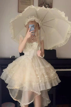 Apricot Sleeveless Rose Prologue Print Ruffle Bowknot Sweet Elegant Princess Lolita Jsk Dress