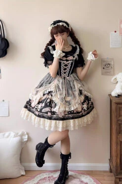 Black Sleeveless Rose Prologue Print Ruffle Bowknot Sweet Elegant Princess Lolita Jsk Dress