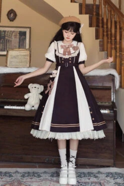 Black/White Chocolate Workshop Short Version Elegant Short Puff Sleeves Sweet Lolita Dress