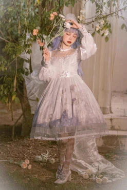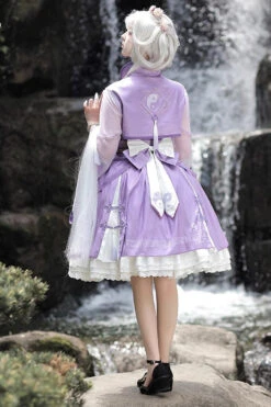 Multi-layer Little Taoist Priest Print Ruffle Sweet Chinese Style Lolita Jsk Dress 2 Colors