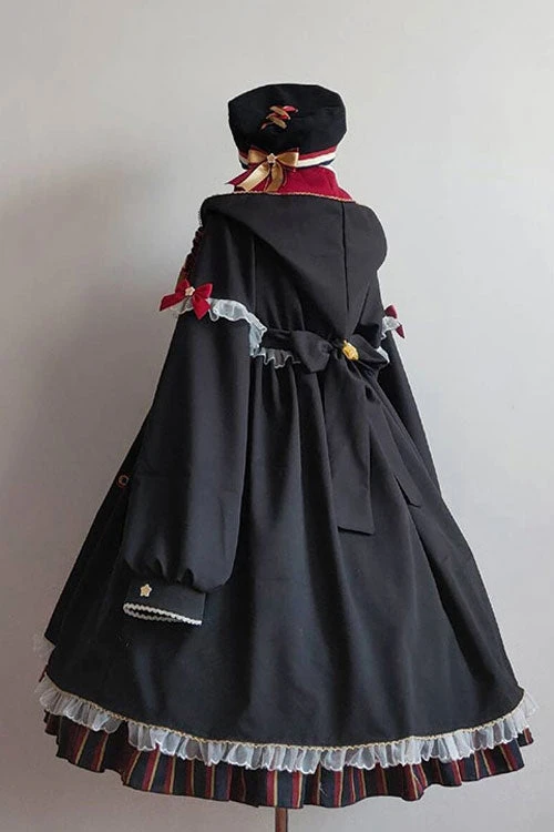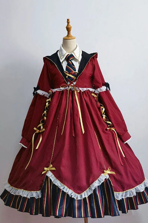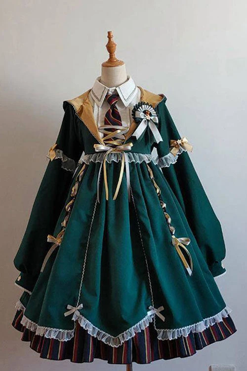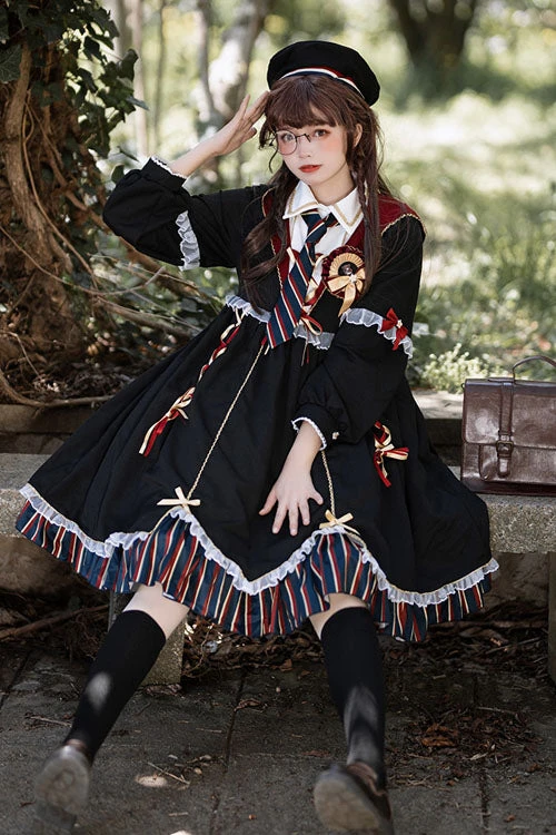 Vintage College Style Lapel Collar Long Sleeves Double Paneled Hem Sweet Lolita Dress