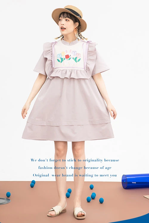 Vintage College Style Lapel Collar Long Sleeves Double Paneled Hem Sweet Lolita Dress
