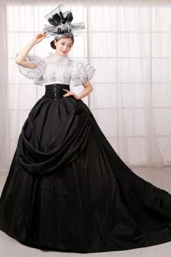 White/Black Stitching Short Sleeves High Waisted Back Zipper Bowknot Victorian Lolita Prom Dress