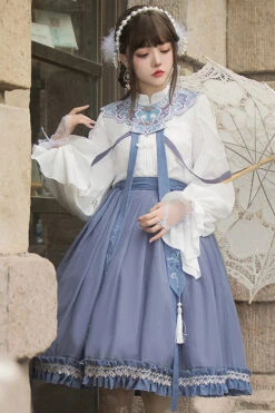 Trumpet Sleeves Single Breasted High Waisted Bowknot Ruffled Victorian Lolita Prom Dress