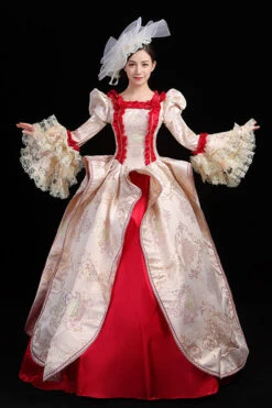 Wine/Golden Stitching Court Style High Waisted Trumpet Sleeves Embroidery Floral Print Victorian Lolita Prom Dress