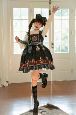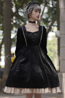 Black Stitching Zipper Cardigan Ruffled Multi-Layer Gothic Lolita Jsk Dress (Will Shine At Night)