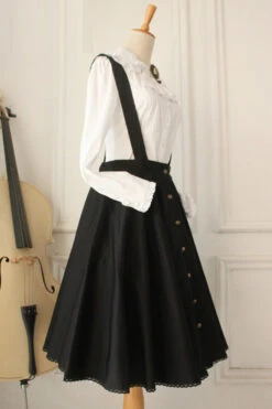 Black Trumpet Sleeves High Waisted Hollow Embroidery Print Victorian Lolita Prom Dress