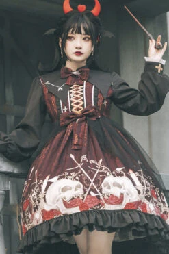 Black/Brown Single Breasted Long Sleeves Ruffled Striped Print Ouji Lolita Dress