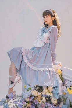 Doll Collar Lantern Long Sleeves Cow Printed Stitching Bowknot Ruffled Sweet Lolita Op Dress
