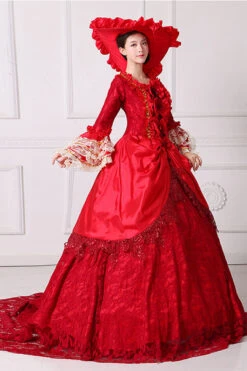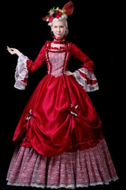 Red Multi-Layer Hime Sleeves High Waisted Hollow Embroidery Floral Print Victorian Lolita Prom Dress