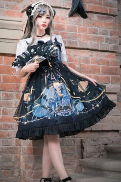 Dark Blue Vintage Mermaid Song Square Collar Bowknot Ruffled Sleeveless Gothic Lolita JSK Dress