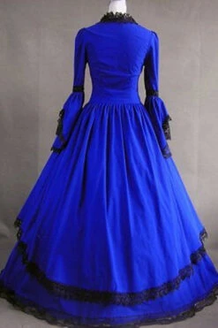 Dark Blue Cotton Square Collar Long Sleeves Floor Length Pleats Victorian Gothic Lolita Dress