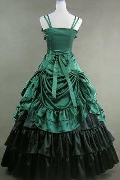 Green Cotton Sleeveless Floor Length Bowknot Multi-Layer Victorian Gothic Lolita Strap Dress