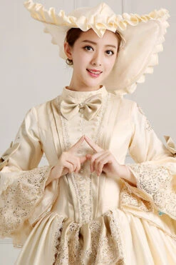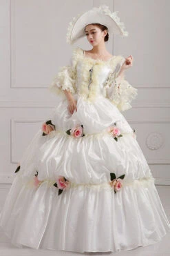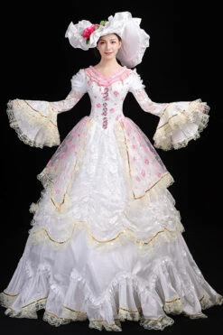 White Court Style High Waisted Flowers Decoration Hime Sleeves Victorian Lolita Prom Dress