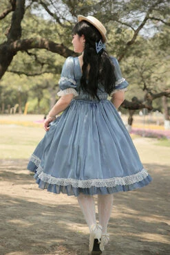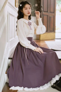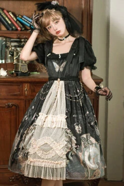 Trumpet Sleeves Single Breasted High Waisted Bowknot Ruffled Victorian Lolita Prom Dress