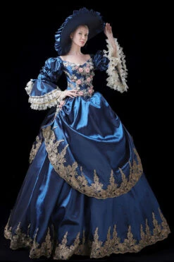 Trumpet Sleeves High Waisted Three Dimensional Flower Embroidery Print Victorian Lolita Prom Dress