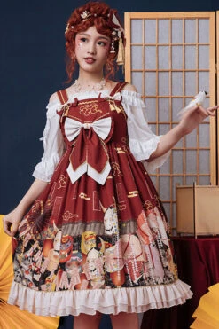 Wine Demon Mask Print Bowknot High Waisted Sling Sweet Lolita Dress