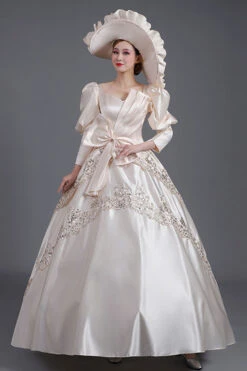 Champagne Half Sleeves High Waisted Hollow Floral Embroidery Victorian Lolita Prom Dress