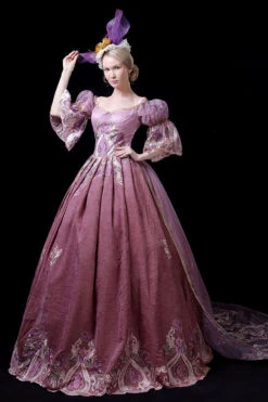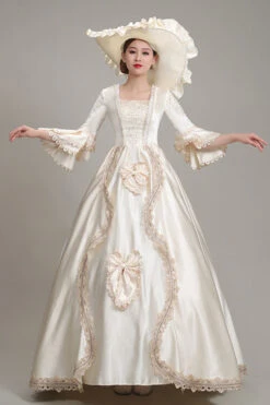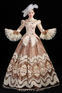 Light Golden Long Sleeves Hollow Embroidery Print High Waisted Victorian Lolita Prom Dress