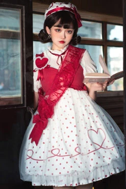 Red Hollow Love Polka Dot Print Sakurahime Sweet Lolita Dress