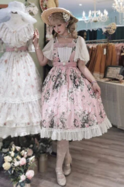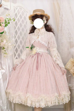 Pink Elegant Vintage Square Collar Short Sleeves Multi-Layer Ruffled Classic Lolita OP Dress