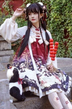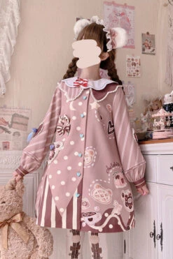 Pink Doll Lapel Collar Single Breasted Lantern Long Sleeves Bear Print Sweet Lolita OP Dress