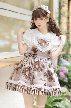 Black Ruffled Strap Mesh Lantern Sleeves High Waisted Irregular Hem Gothic Lolita OP Dress