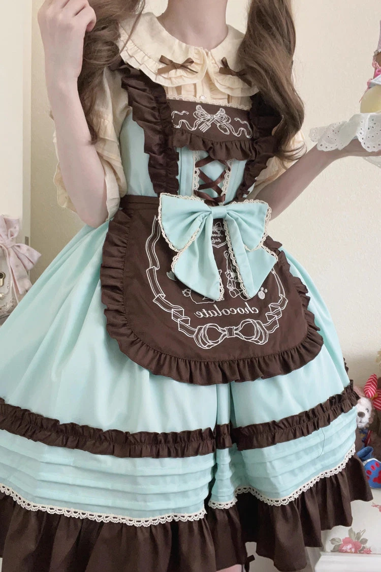 Blue Plaid Print Bow Ruffled Long Sleeves Single Breasted Sweet Lolita OP Dress